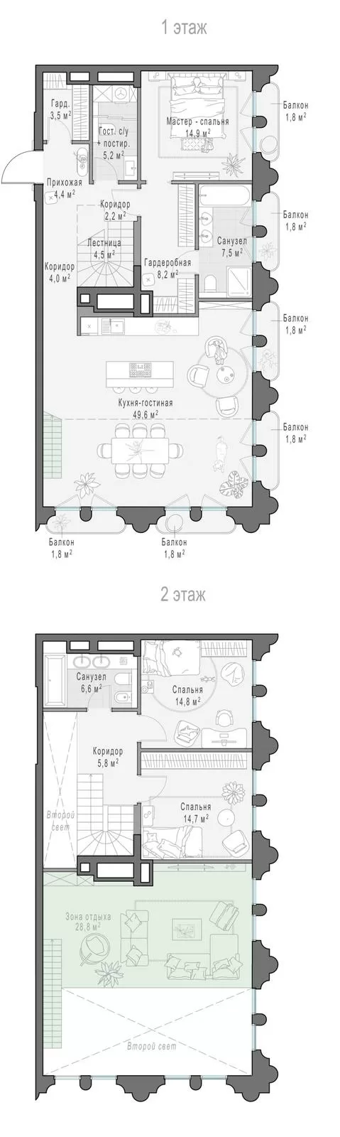 • Клубные дома скрыты от посторонних глаз и шума мегаполиса обильной зеленью и окружены парадной сталинской застройкой.