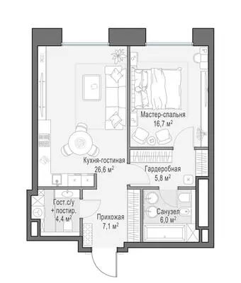 58.2 м² · 1 комната · 7/13 этаж · Сентябрь 2027