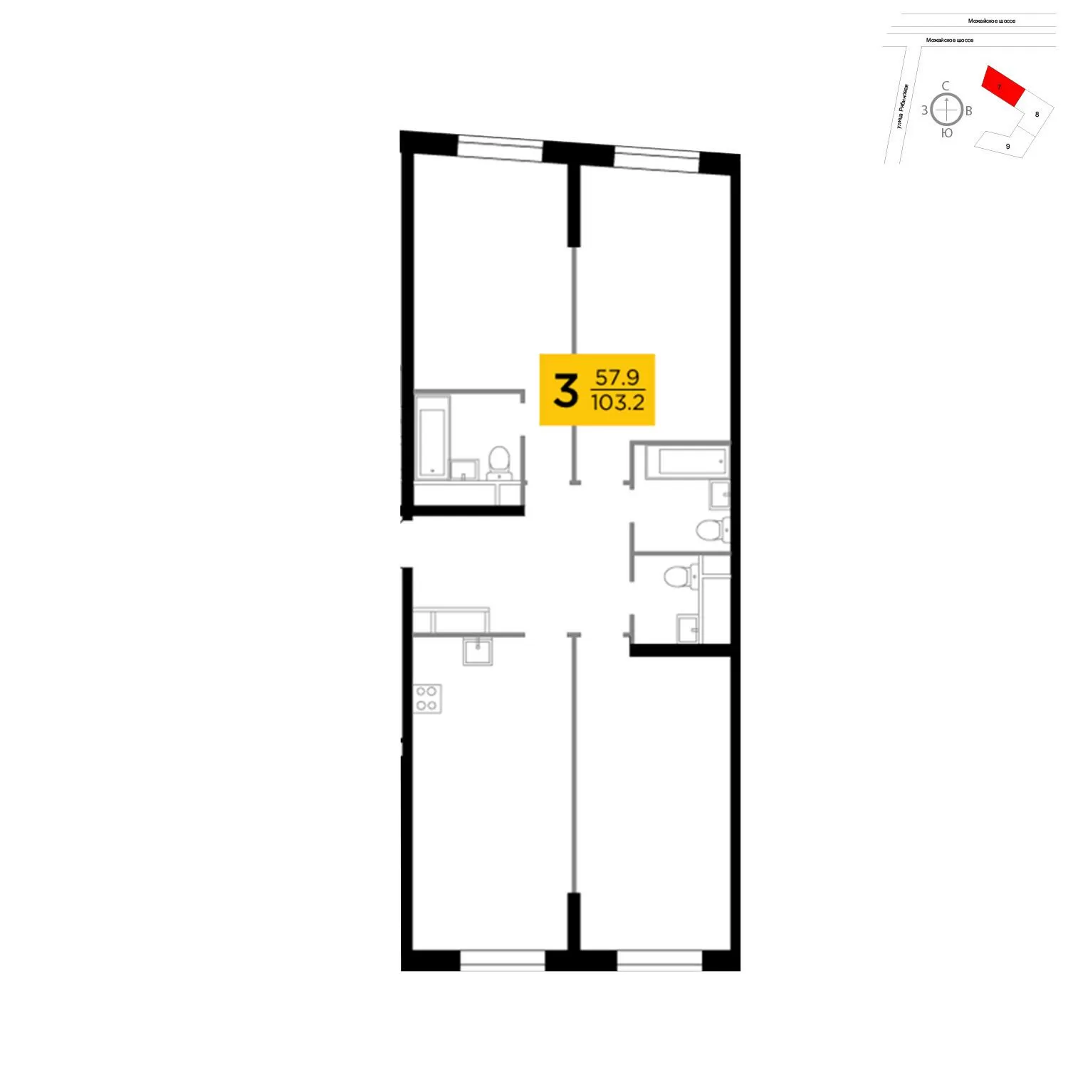 101.9 м² · 3 комнаты · 24/30 этаж · Объект сдан