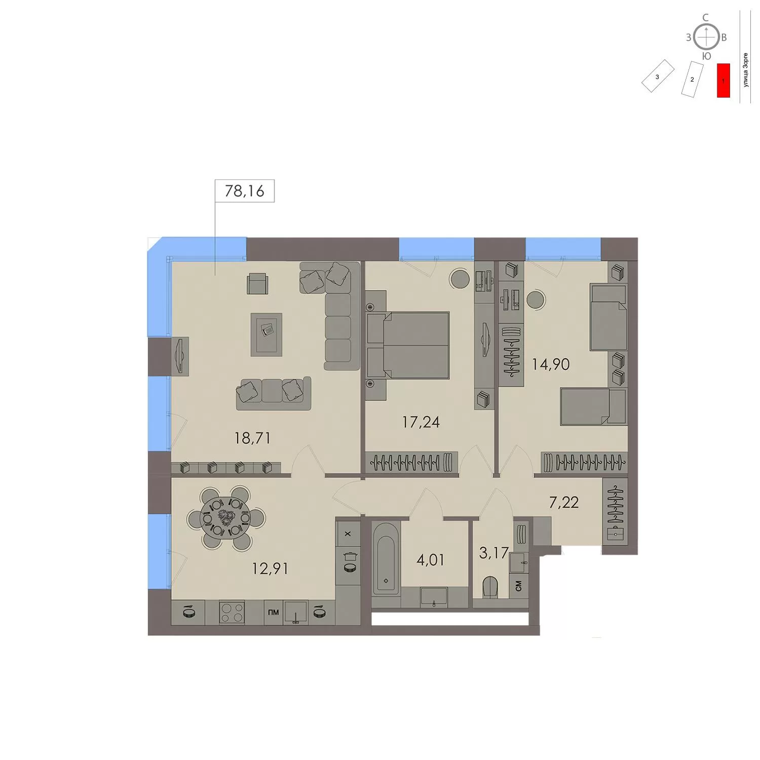 ГлавнаяЖилая недвижимостьЖК «Зорге 9»3-комнатная квартира № 4