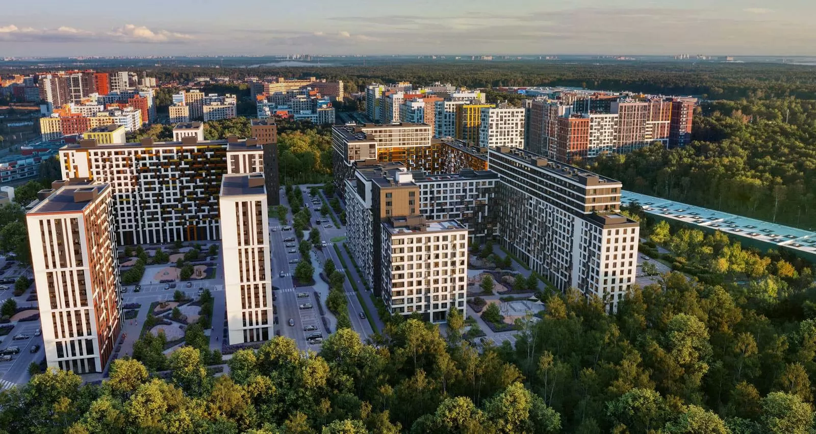 • Полностью закрытая территория с консьерж-сервисом, охраной, спортивными площадками и концепцией «двор без автомобилей».