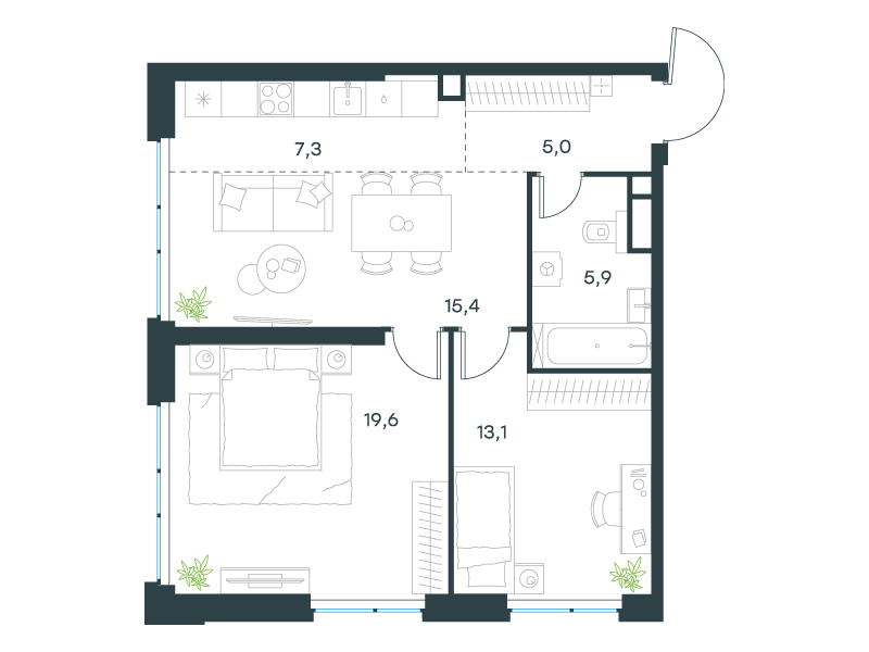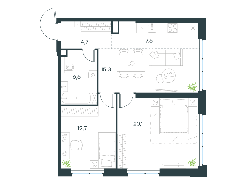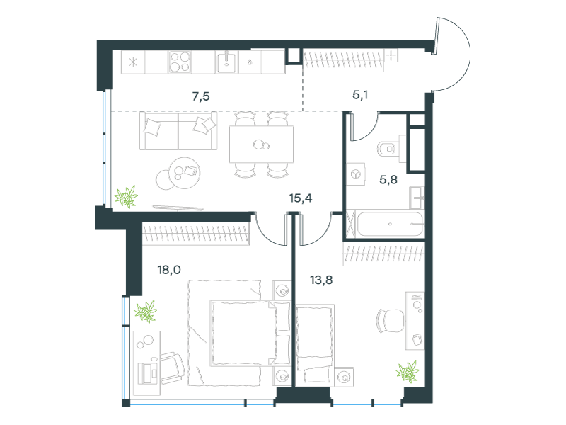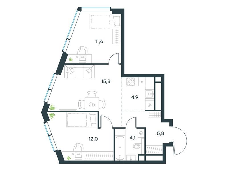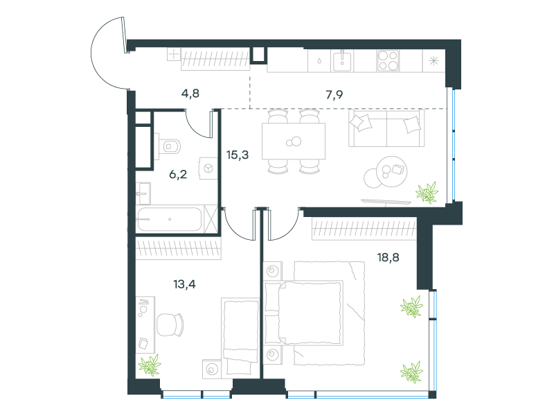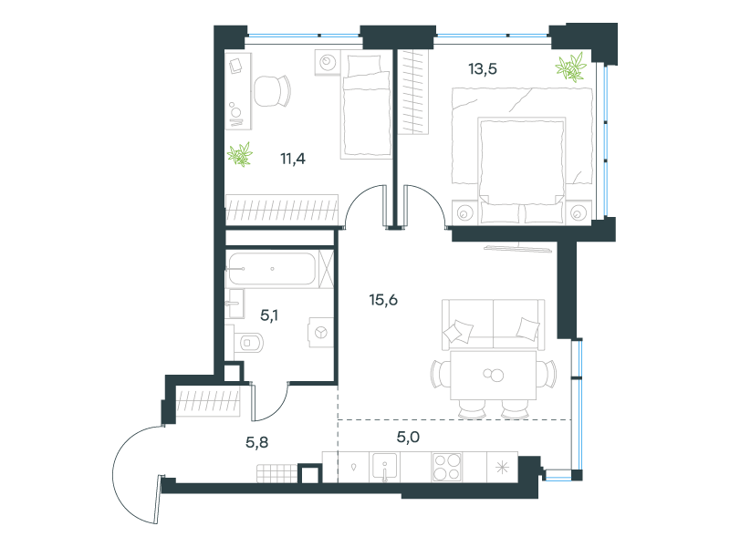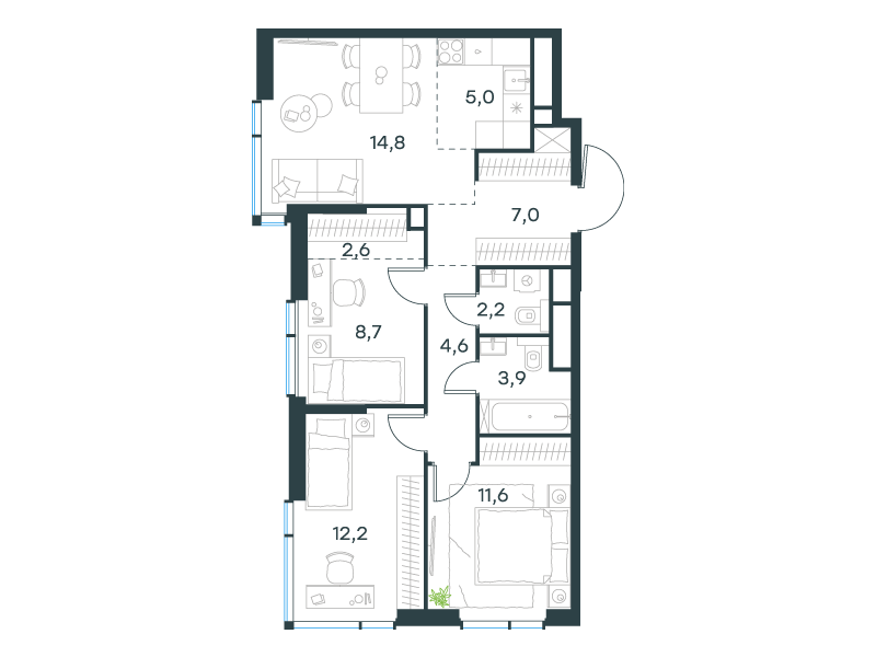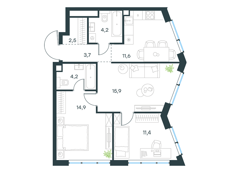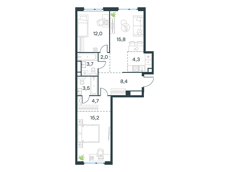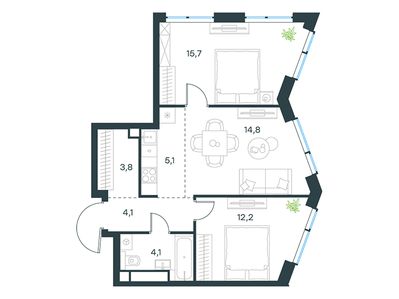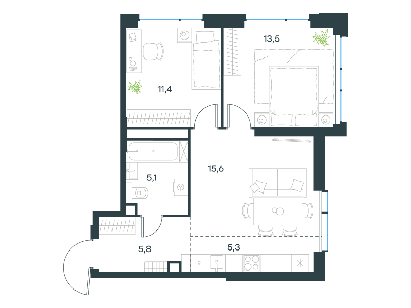 | 13 | Сентябрь 2027 | 1 | 15 | 7 | 7 | 3 | 59.8 | 28 795 084 | без отделки | ![]() | 7 | ||