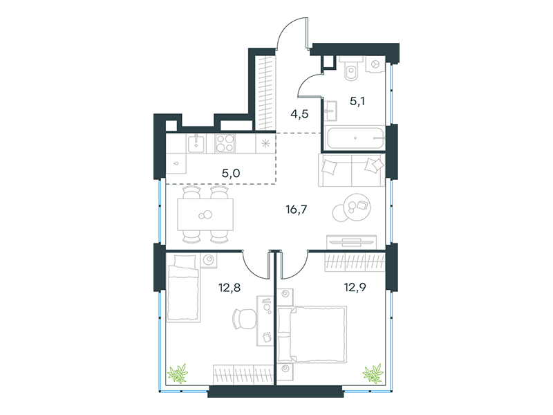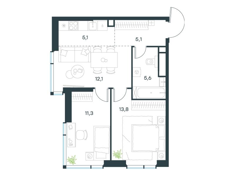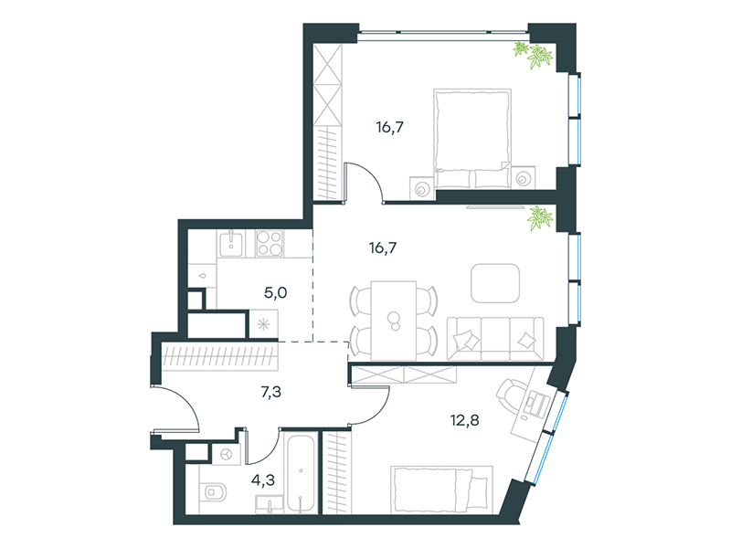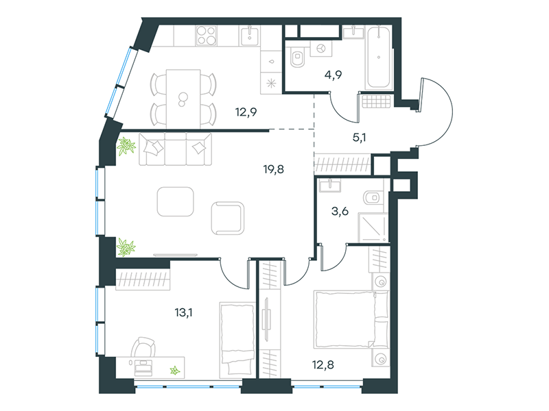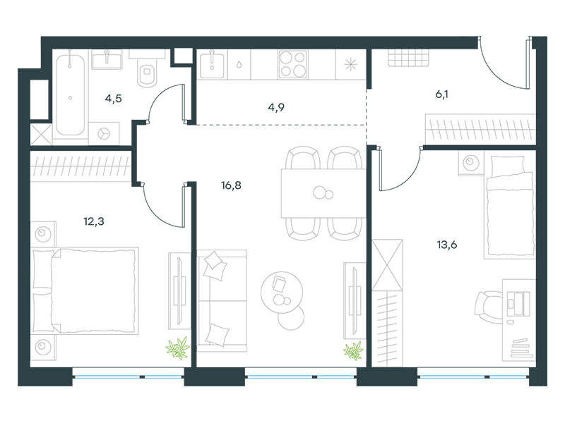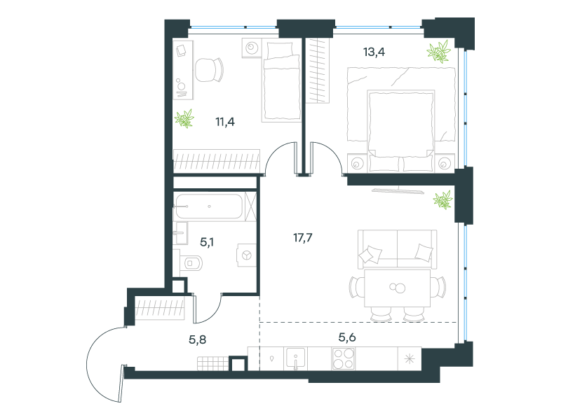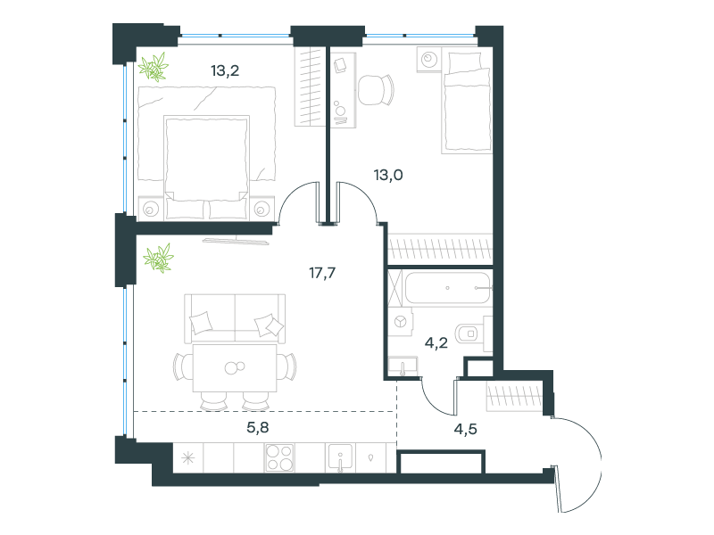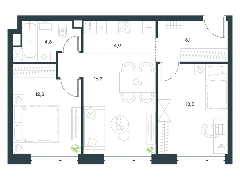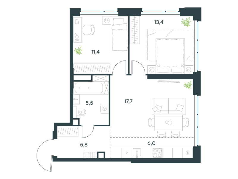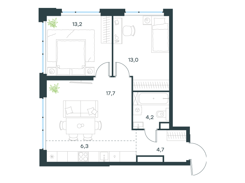 | 13 | Сентябрь 2027 | 1 | 13 | 7 | 7 | 3 | 59.8 | 28 569 161 | без отделки | ![]() | 7 | ||