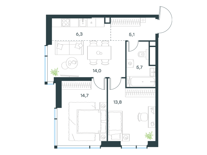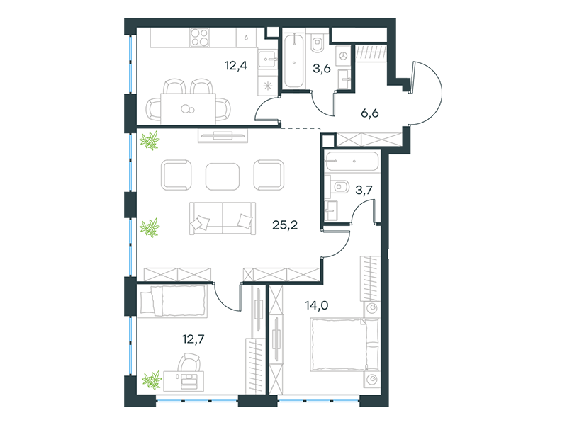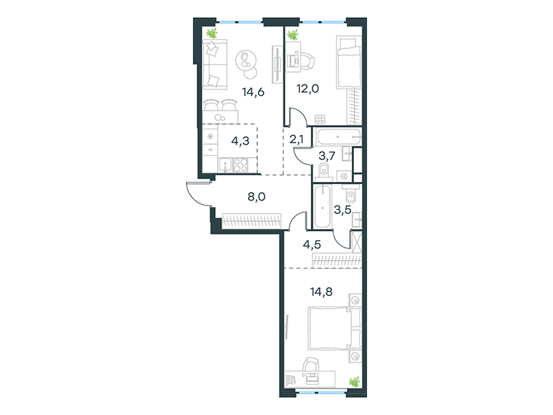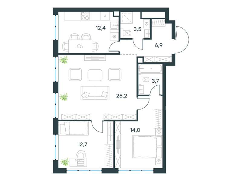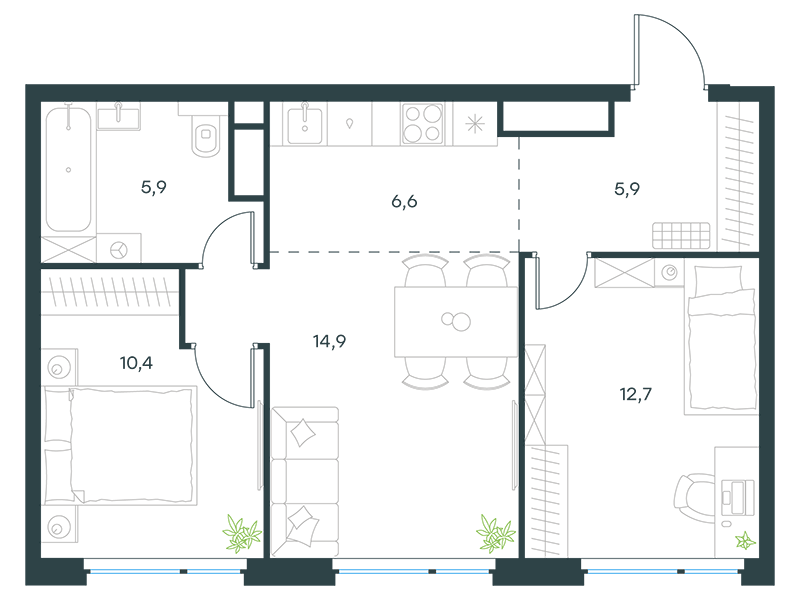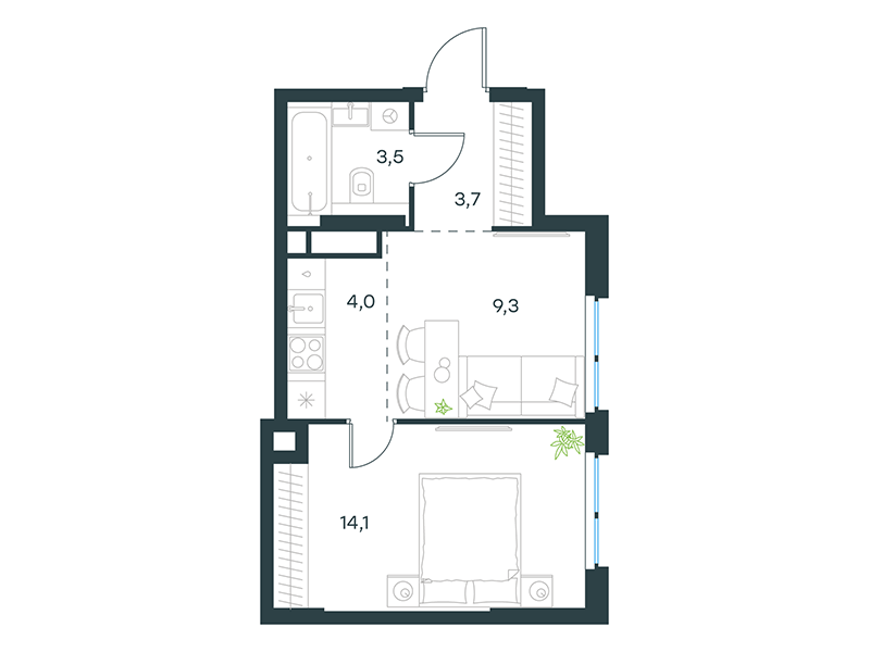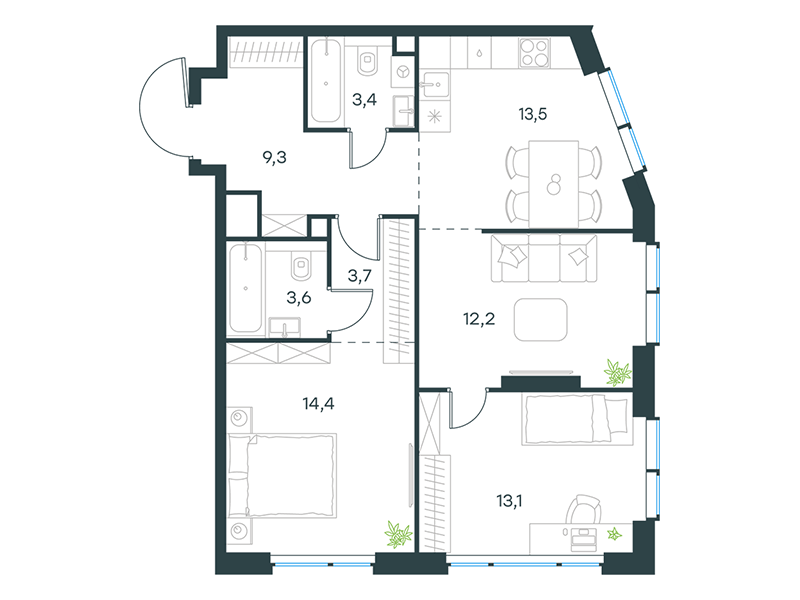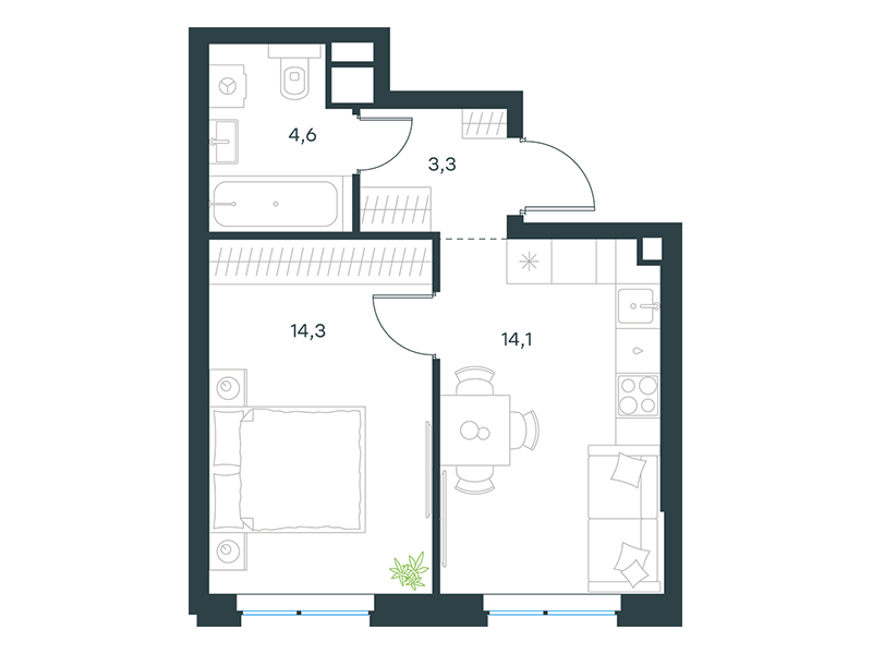 | 13 | Сентябрь 2027 | 1 | 14 | 4 | 4 | 3 | 59.1 | 29 184 377 | без отделки | ![]() | 4 | ||