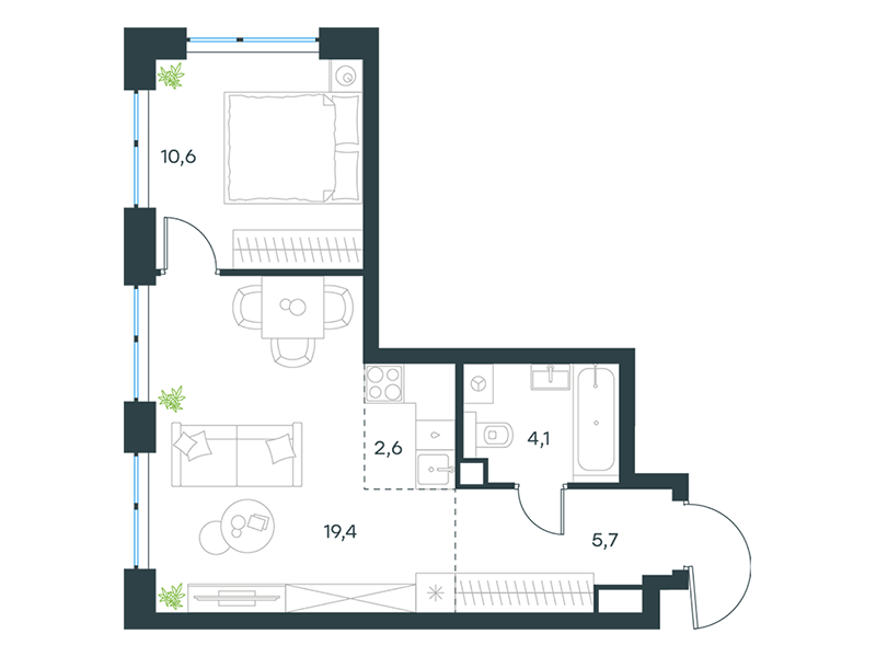 | 10 | Декабрь 2026 | 1 | 42 | 1 | 1 | 2 | 57.2 | 32 103 784 | с отделкой | ![]() | 1 | ||