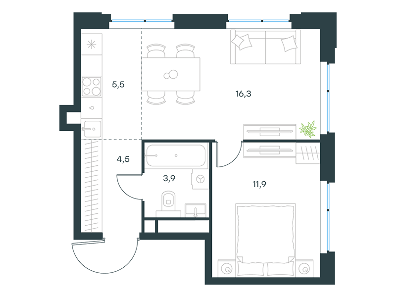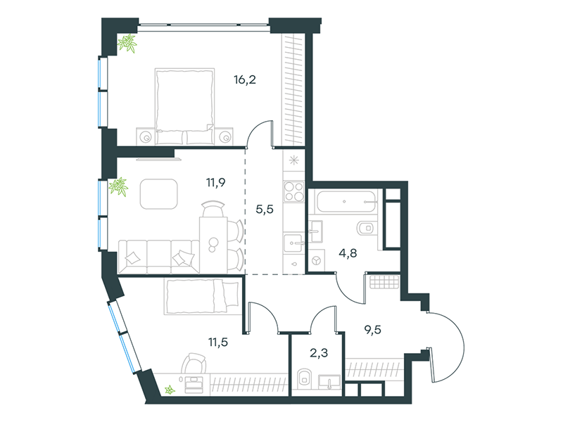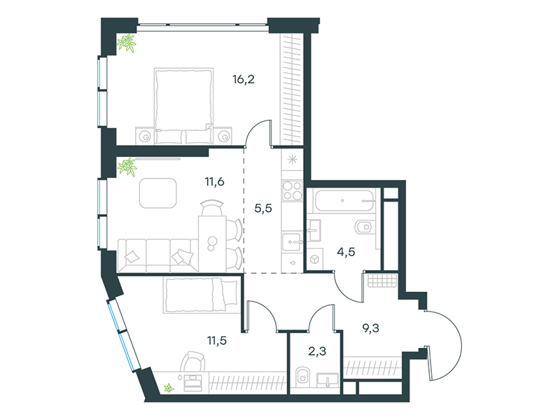 | 11 | Сентябрь 2027 | 1 | 16 | 5 | 5 | 2 | 43.4 | 25 688 563 | с отделкой | ![]() | 5 | ||