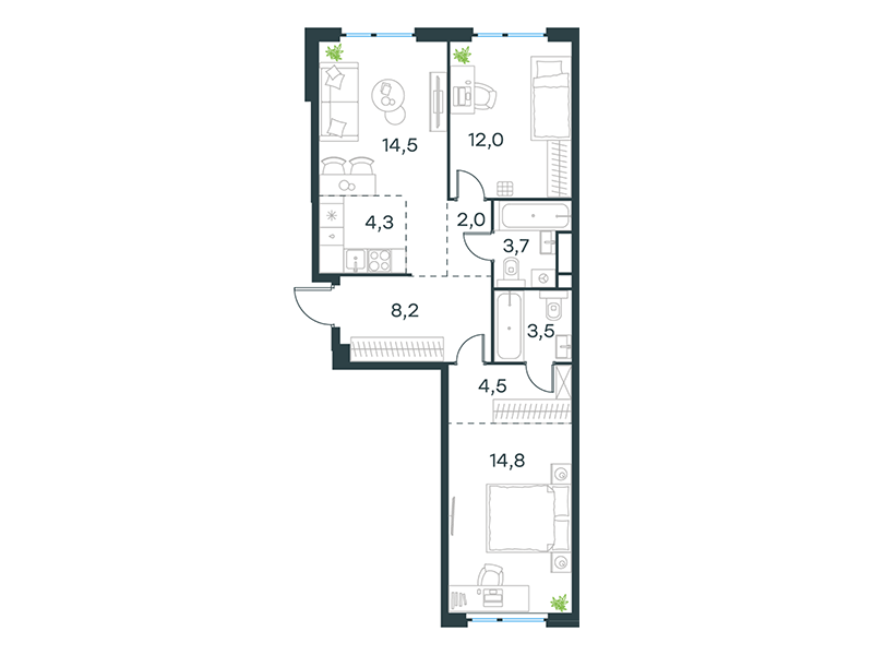 | 8 | Декабрь 2026 | 1 | 3 | 2 | 2 | 2 | 34.6 | 19 968 129 | без отделки | ![]() | 2 | ||