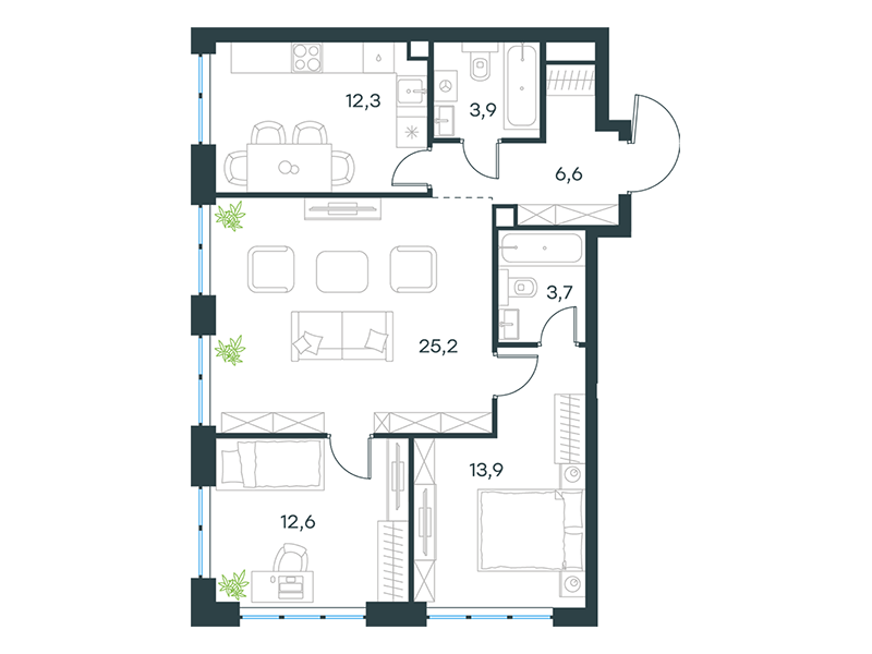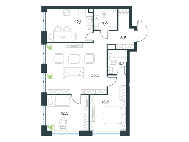 | 13 | Сентябрь 2027 | 1 | 25 | 6 | 6 | 3 | 56.7 | 28 679 159 | без отделки | ![]() | 6 | ||