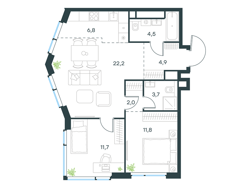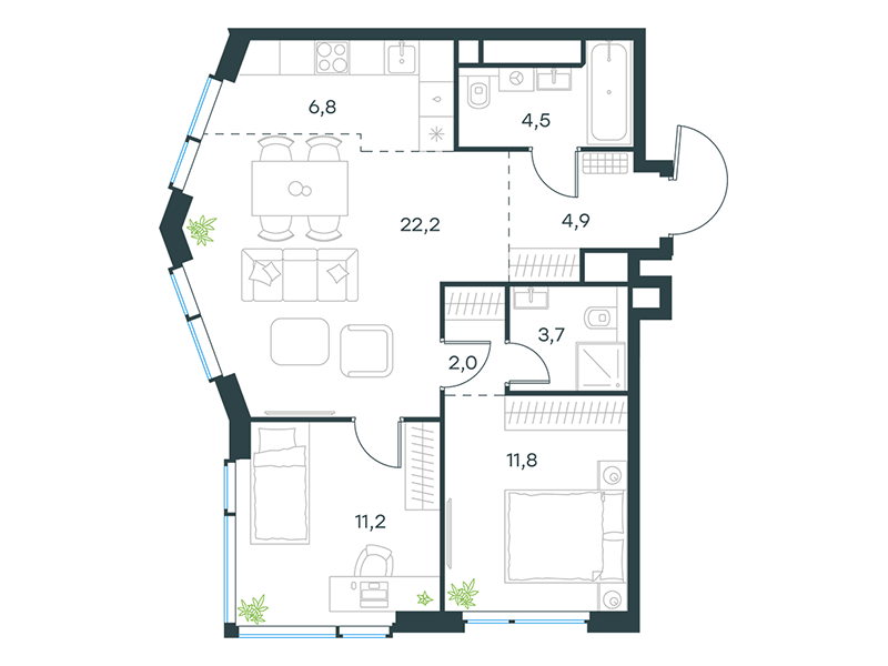 | 11 | Сентябрь 2027 | 2 | 20 | 3 | 3 | 2 | 38.7 | 22 168 957 | с отделкой | ![]() | 3 | ||