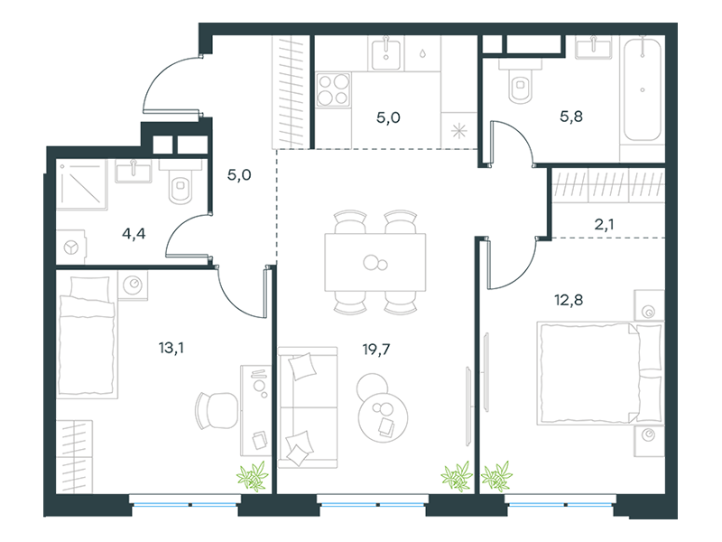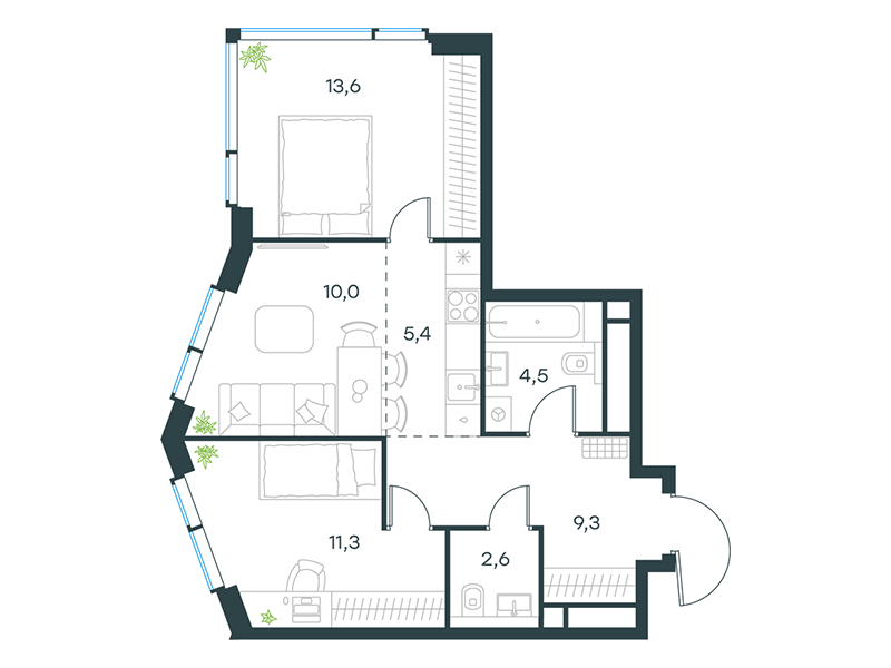 | 13 | Сентябрь 2027 | 1 | 5 | 4 | 4 | 3 | 81.1 | 43 091 437 | без отделки | ![]() | 4 |