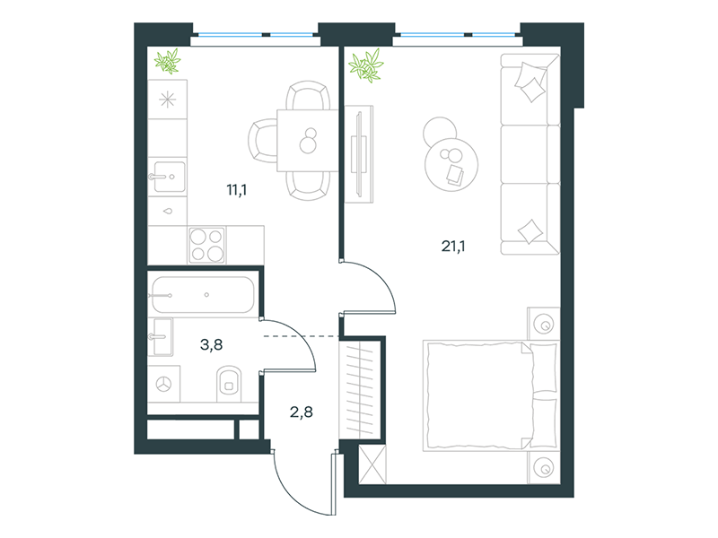 | 11 | Сентябрь 2027 | 1 | 21 | 4 | 4 | 2 | 38.1 | 23 066 544 | с отделкой | ![]() | 4 | ||
