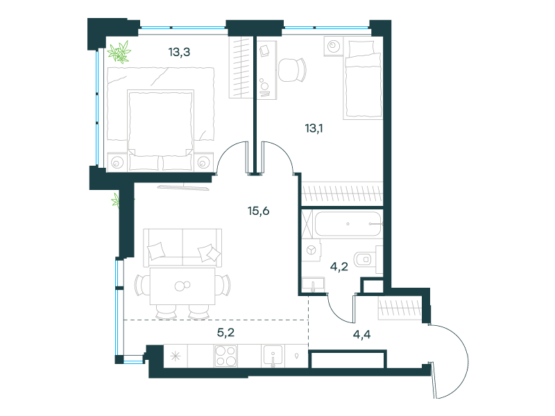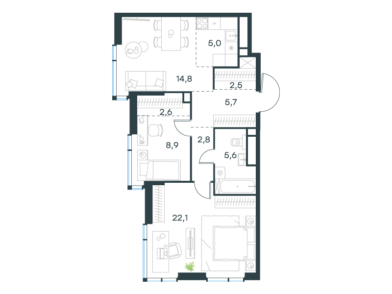 | 13 | Сентябрь 2027 | 1 | 22 | 4 | 4 | 3 | 58.4 | 29 635 658 | без отделки | ![]() | 4 | ||