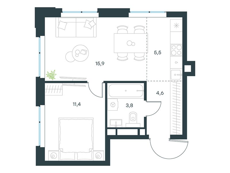 | 8 | Декабрь 2026 | 1 | 2 | 4 | 4 | 1 | 40.7 | 23 480 426 | без отделки | ![]() | 4 |
