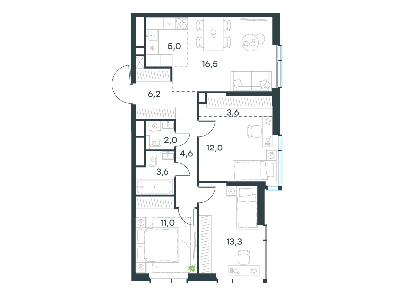| 13 | Сентябрь 2027 | 1 | 16 | 2 | 2 | 3 | 65.6 | 34 415 862 | без отделки | ![]() | 2 | ||