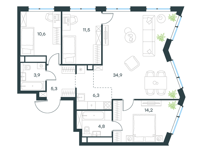| 11 | Сентябрь 2027 | 2 | 18 | 6 | 6 | 1 | 39.9 | 21 356 537 | с отделкой | ![]() | 6 | ||