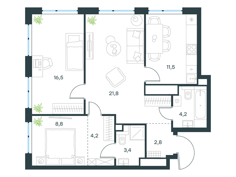 | 11 | Сентябрь 2027 | 2 | 18 | 4 | 4 | 1 | 21.2 | 16 375 738 | с отделкой | ![]() | 4 | ||