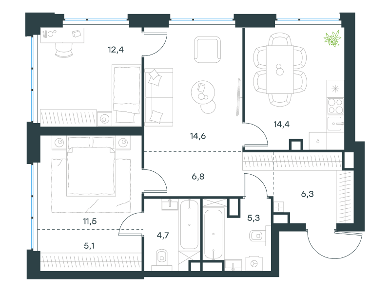 | 7 | Декабрь 2026 | 1 | 2 | 4 | 4 | 3 | 62.8 | 34 152 711 | без отделки | ![]() | 4 | ||