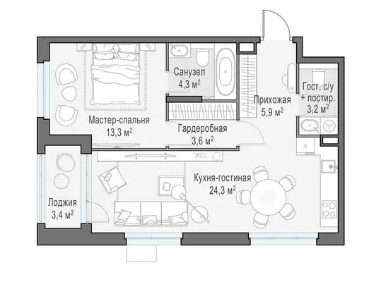 • Разнообразные планировочные решения, функциональные планировки, евроформаты, наличие гардеробных и кладовых