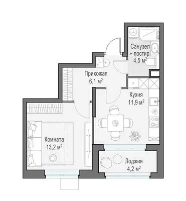 37.4 м² · 1 комната · 18/18 этаж · Сентябрь 2025