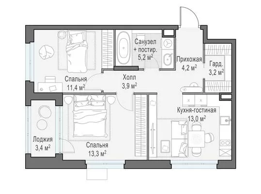 • Разнообразные планировочные решения, функциональные планировки, евроформаты, наличие гардеробных и кладовых