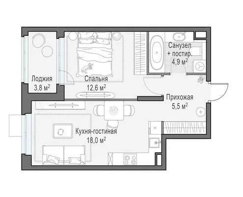 40.8 м² · 2 комнаты · 15/18 этаж · Сентябрь 2025