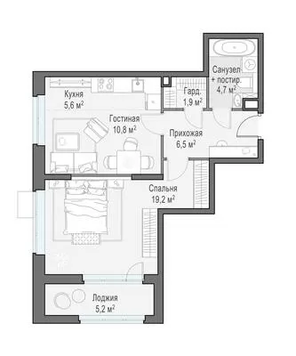 48.6 м² · 2 комнаты · 15/18 этаж · Объект сдан
