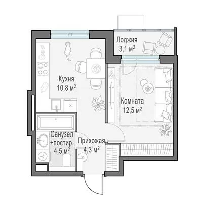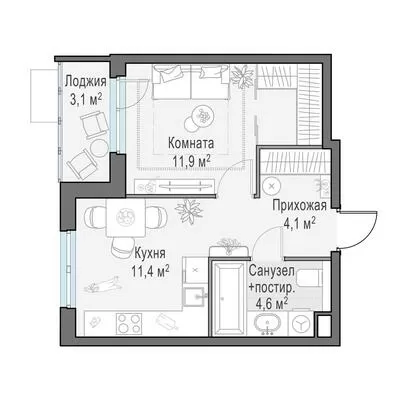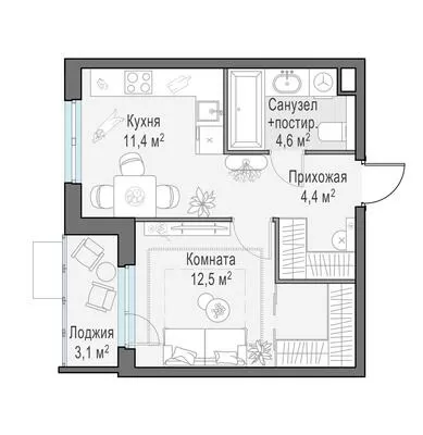 ГлавнаяЖилая недвижимость«Новое Пушкино» ЖК1-комнатная квартира № 1