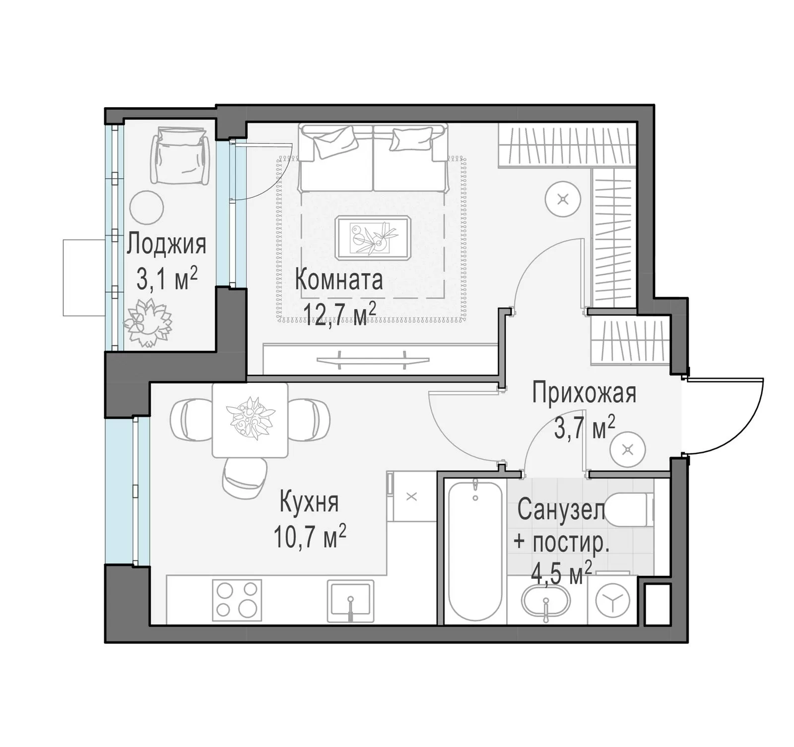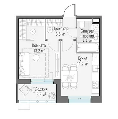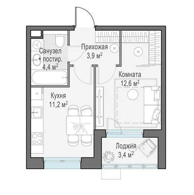 ГлавнаяЖилая недвижимость«Новое Пушкино» ЖК1-комнатная квартира № 3