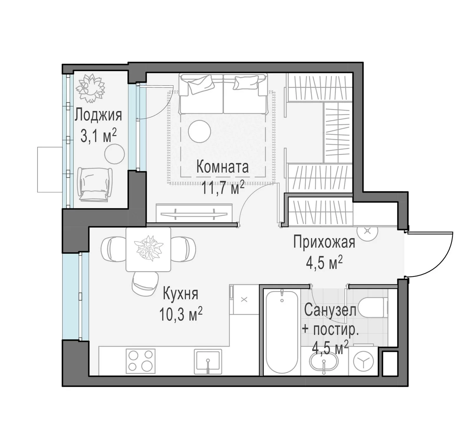 ГлавнаяЖилая недвижимость«Новое Пушкино» ЖК1-комнатная квартира № 1