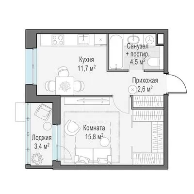ГлавнаяЖилая недвижимость«Новое Пушкино» ЖК1-комнатная квартира № 1