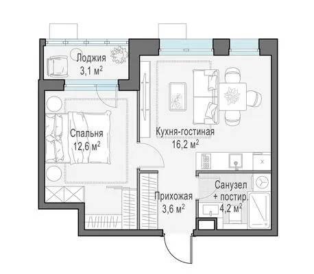 ГлавнаяЖилая недвижимость«Новое Пушкино» ЖК2-комнатная квартира № 9