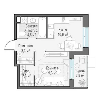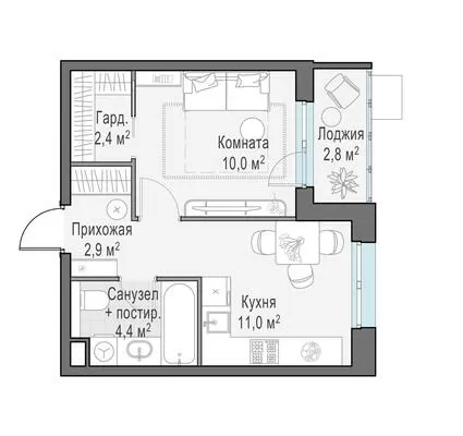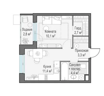 ГлавнаяЖилая недвижимость«Новое Пушкино» ЖК1-комнатная квартира № 11