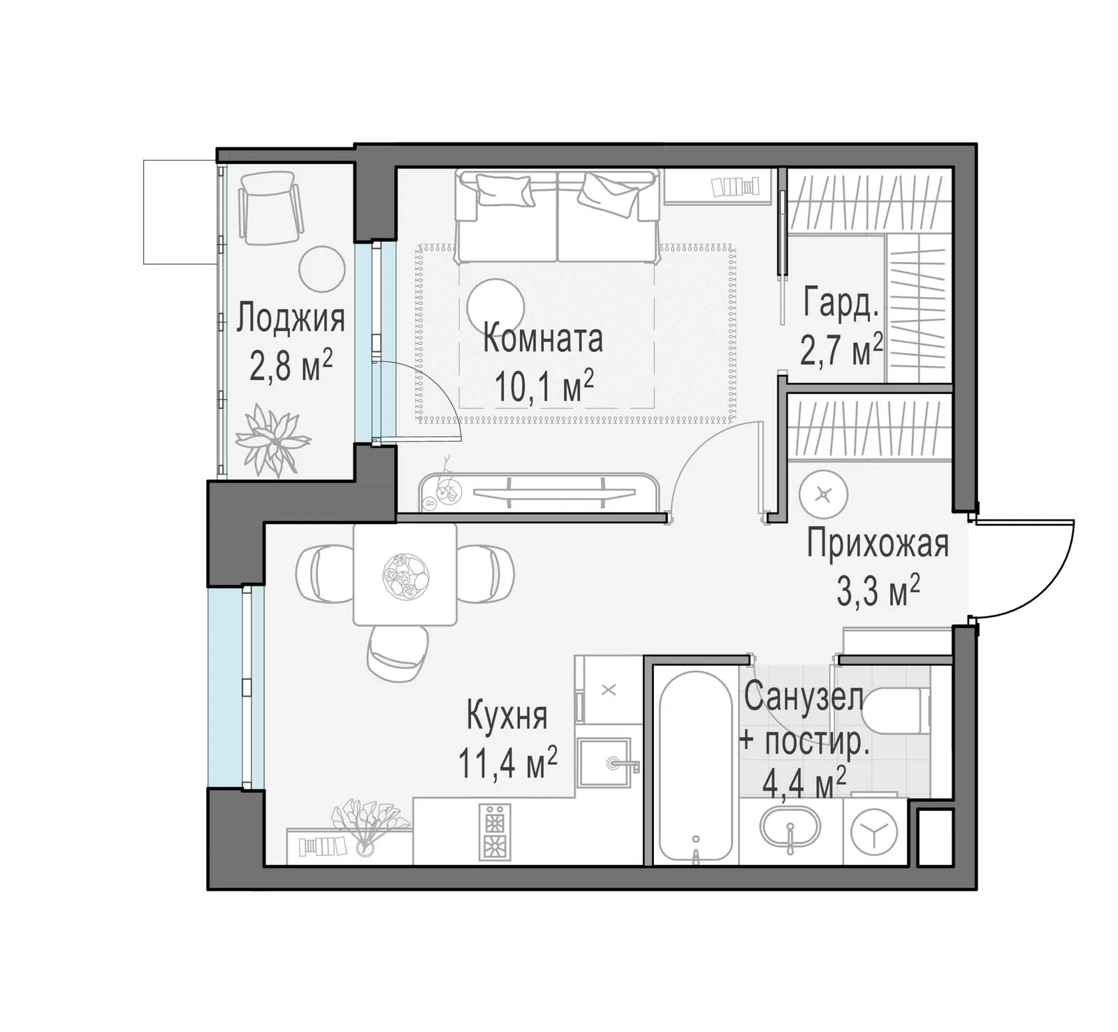 ГлавнаяЖилая недвижимость«Новое Пушкино» ЖК1-комнатная квартира № 1