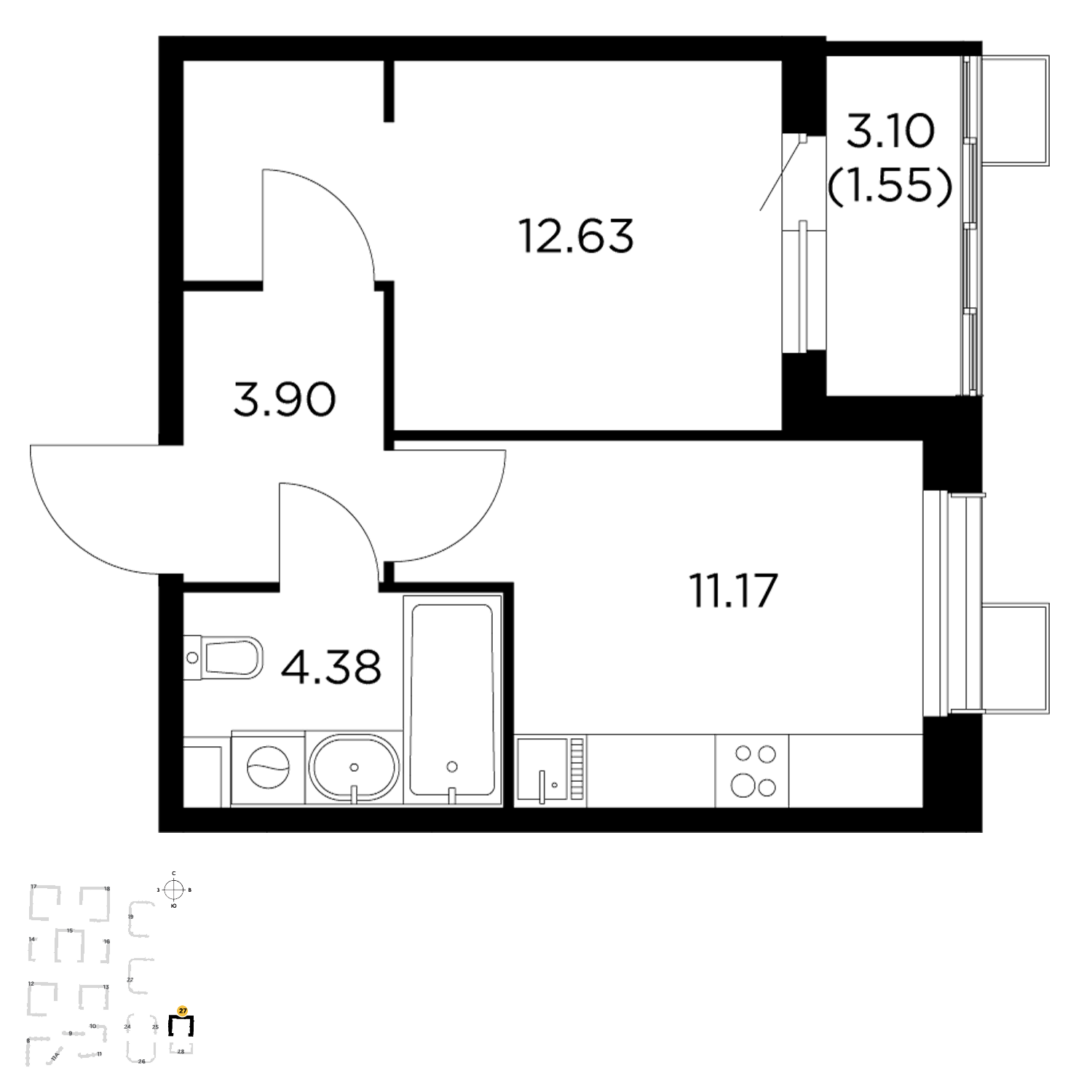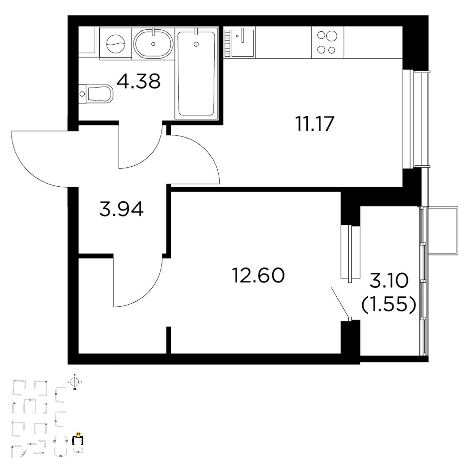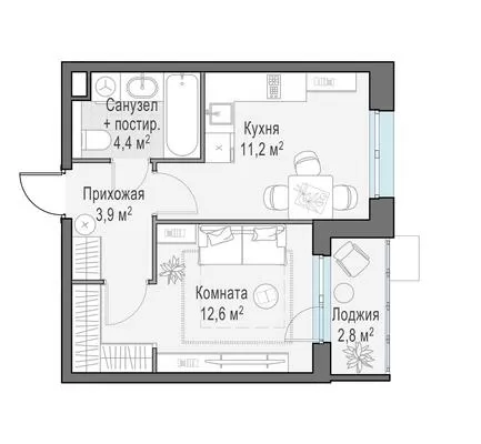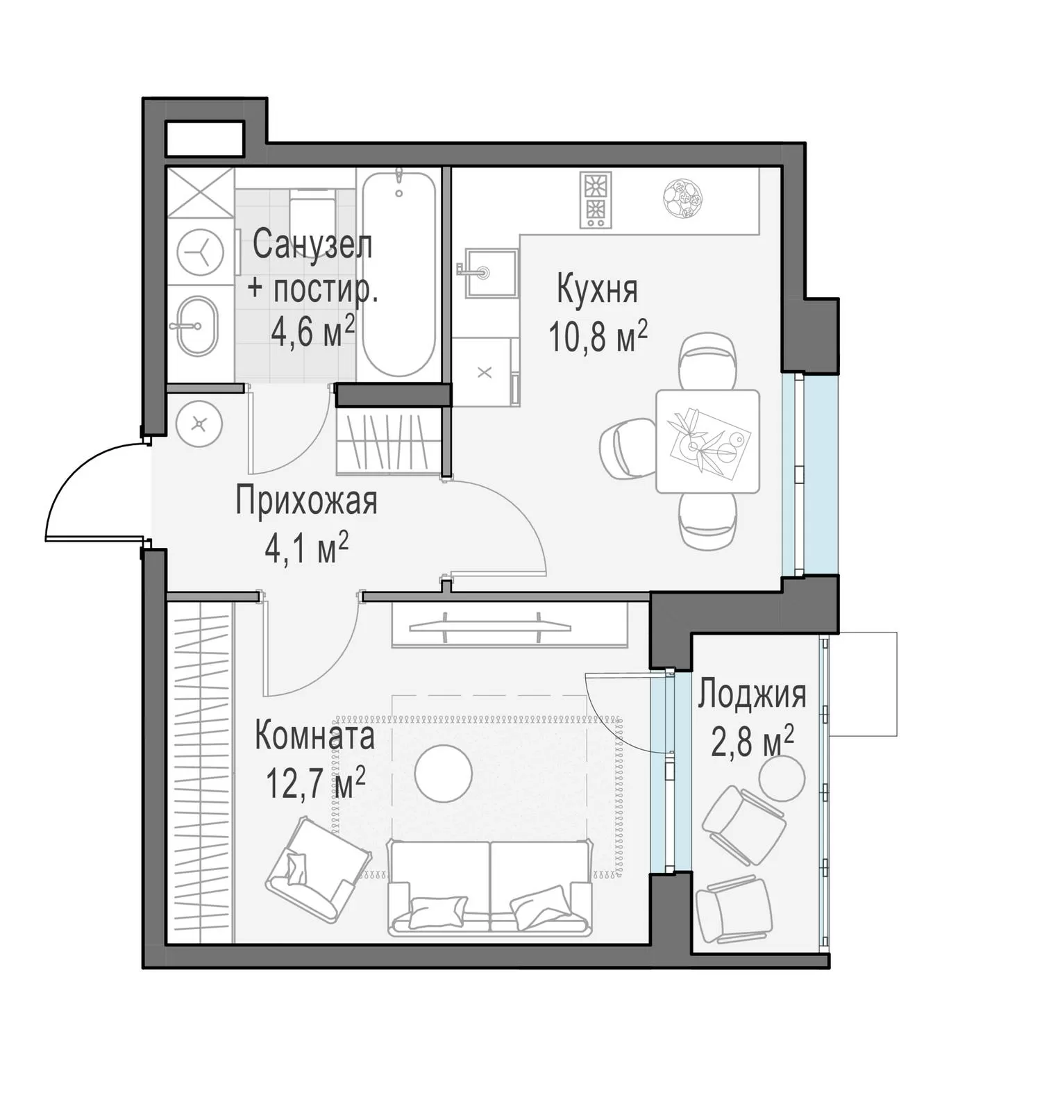 ГлавнаяЖилая недвижимость«Новое Пушкино» ЖК1-комнатная квартира № 1