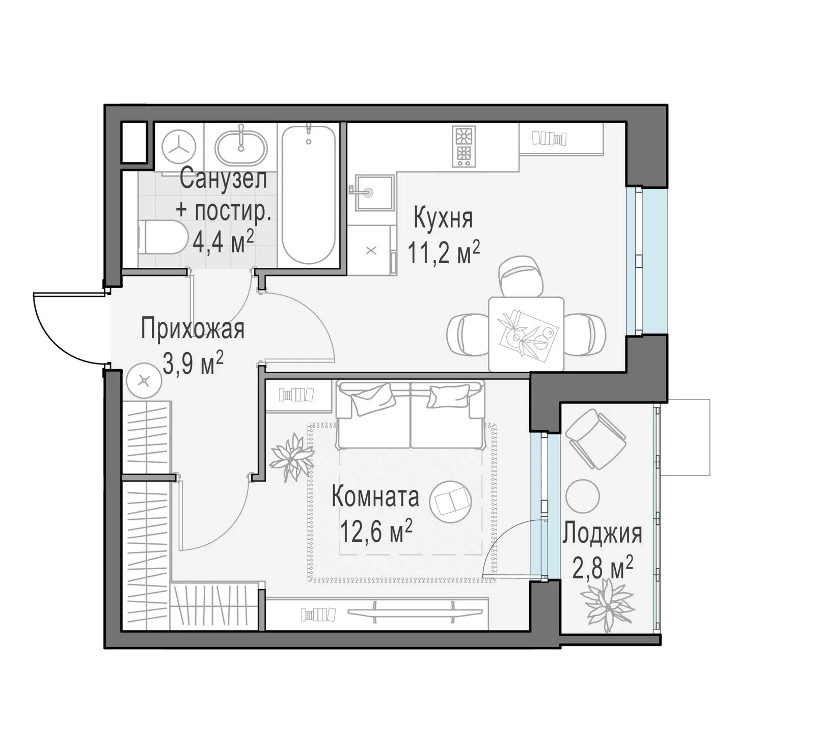 ГлавнаяЖилая недвижимость«Новое Пушкино» ЖК1-комнатная квартира № 4