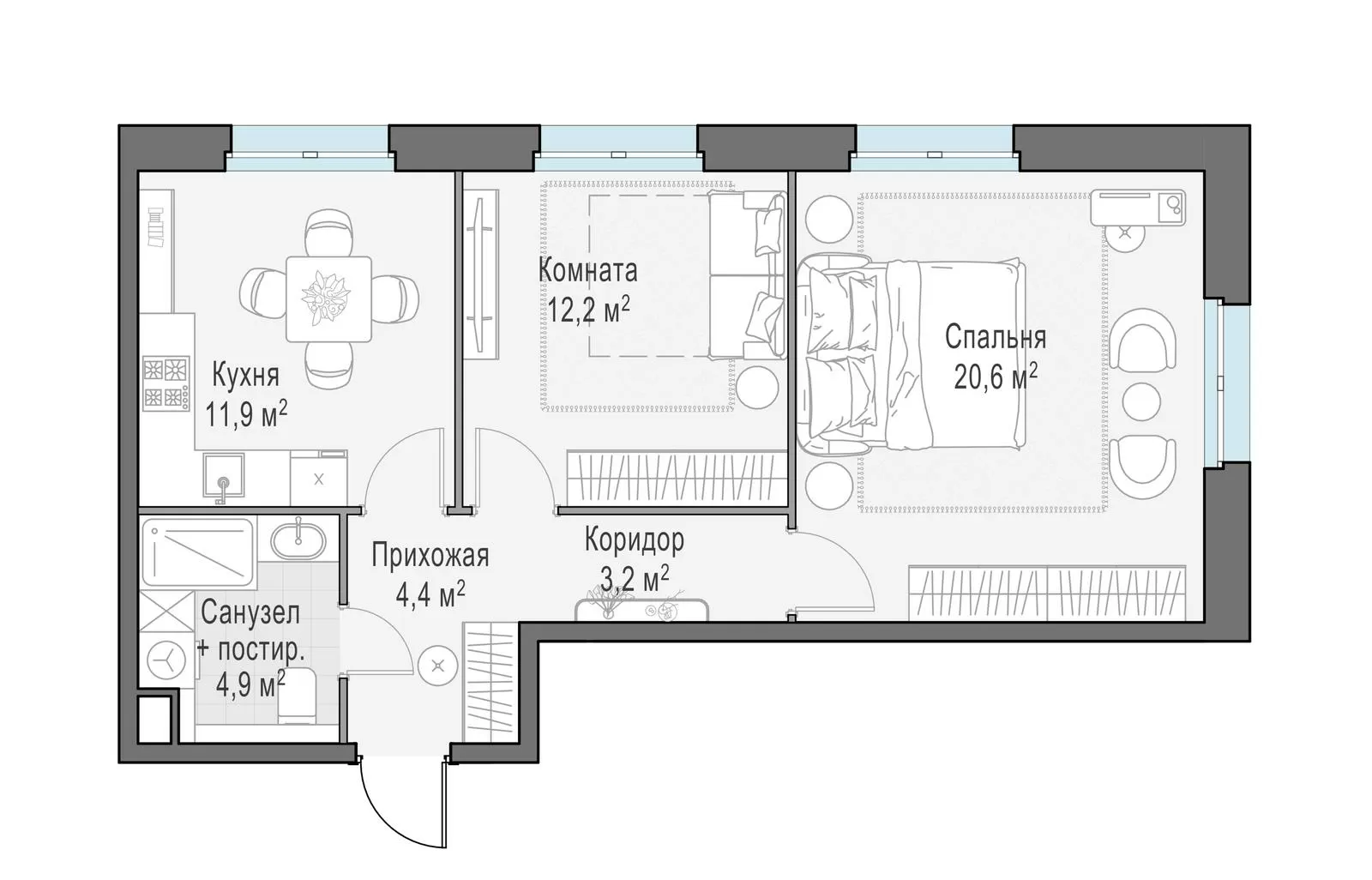 ГлавнаяЖилая недвижимостьЖК «Новое Пушкино»2-комнатная квартира № 3