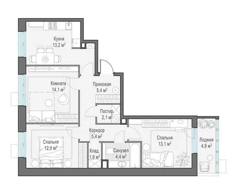 ГлавнаяЖилая недвижимость«Новое Пушкино» ЖК3-комнатная квартира № 5