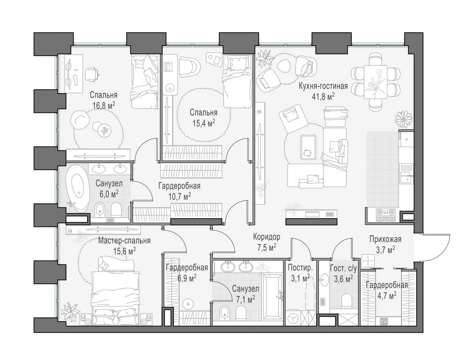 127.6 м² · 4 комнаты · 10/23 этаж · Июнь 2026