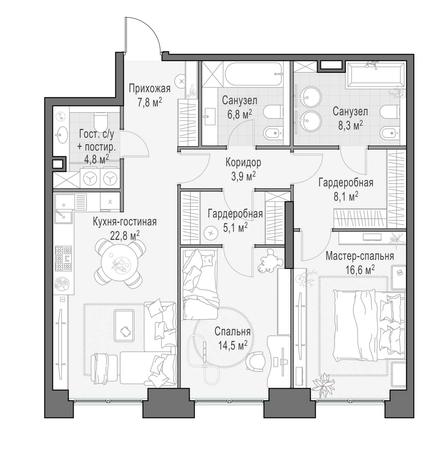 99.5 м² · 3 комнаты · 3/23 этаж · Июнь 2026