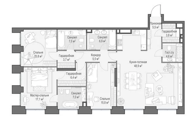 149 м² · 5 комнат · 9/23 этаж · Июнь 2026