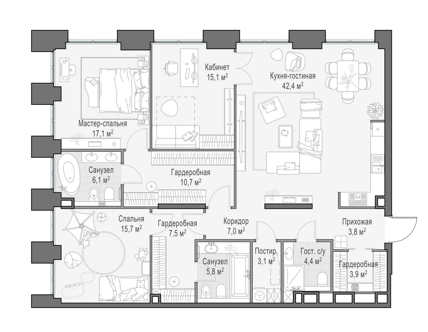 Продажа 4-комнатной квартиры № 3, 144.2 кв.м, этаж 11/22 в Роскошный квартал «Лайф Тайм» (Life Time)