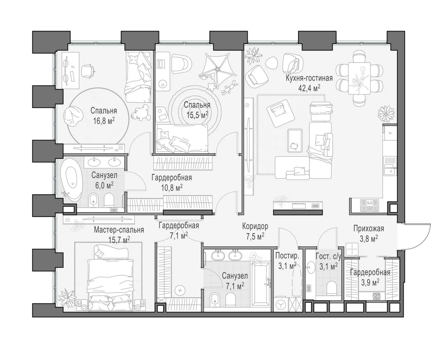 144.2 м² · 4 комнаты · 11/23 этаж · Июнь 2026