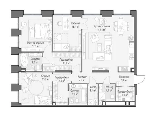 143.5 м² · 4 комнаты · 10/23 этаж · Июнь 2026