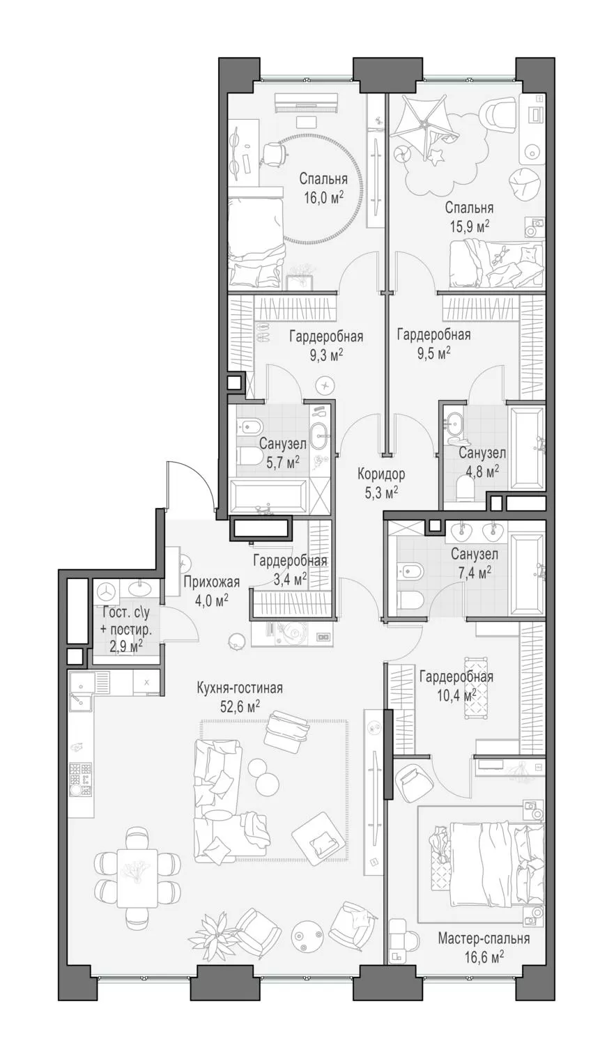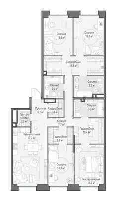 163.6 м² · 5 комнат · 16/23 этаж · Июнь 2026