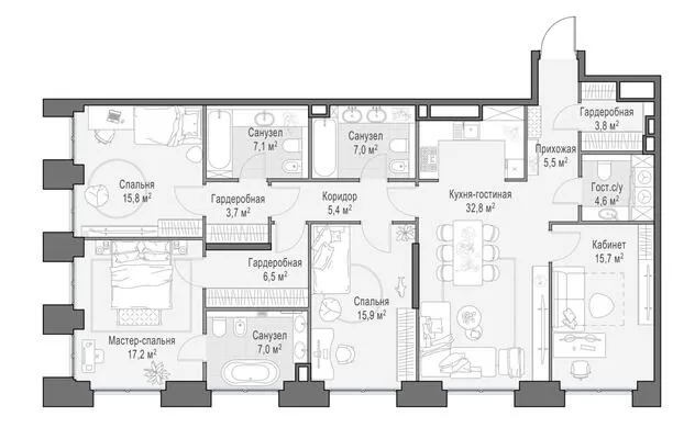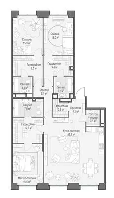 Продажа 5-комнатной квартиры № 1, 164.2 кв.м, этаж 15/22 в Роскошный квартал «Лайф Тайм» (Life Time)