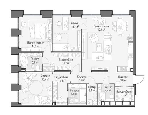 144.2 м² · 4 комнаты · 12/23 этаж · Июнь 2026