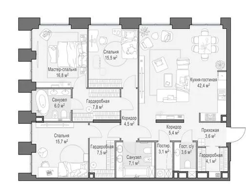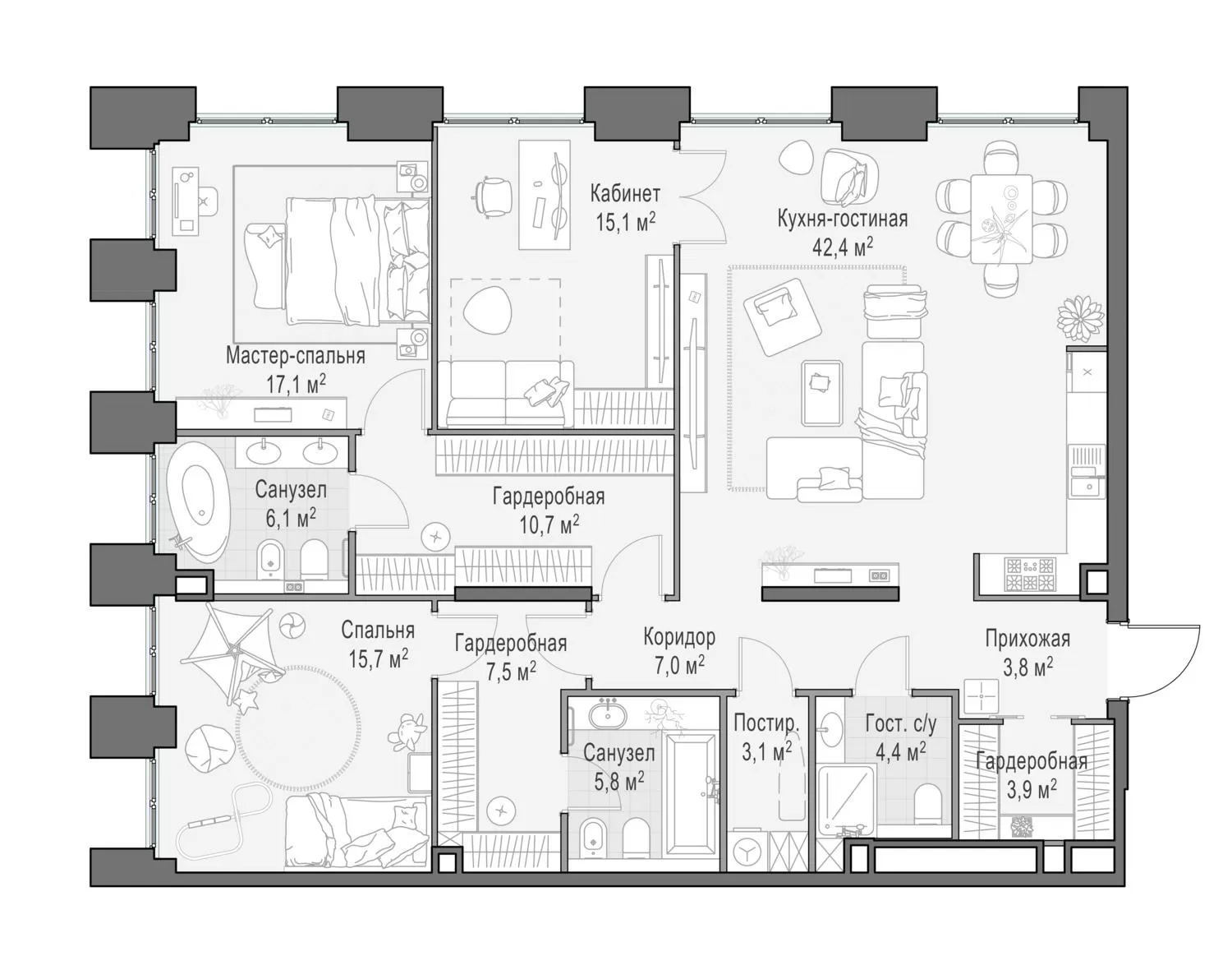 Продажа 4-комнатной квартиры № 3, 143.8 кв.м, этаж 15/22 в Роскошный квартал «Лайф Тайм» (Life Time)