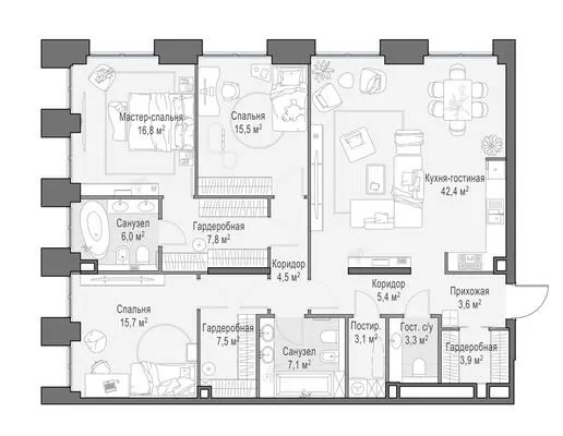 143.5 м² · 4 комнаты · 10/23 этаж · Июнь 2026