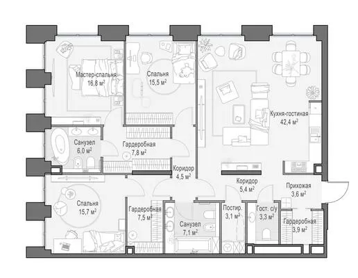 144.2 м² · 4 комнаты · 11/23 этаж · Июнь 2026