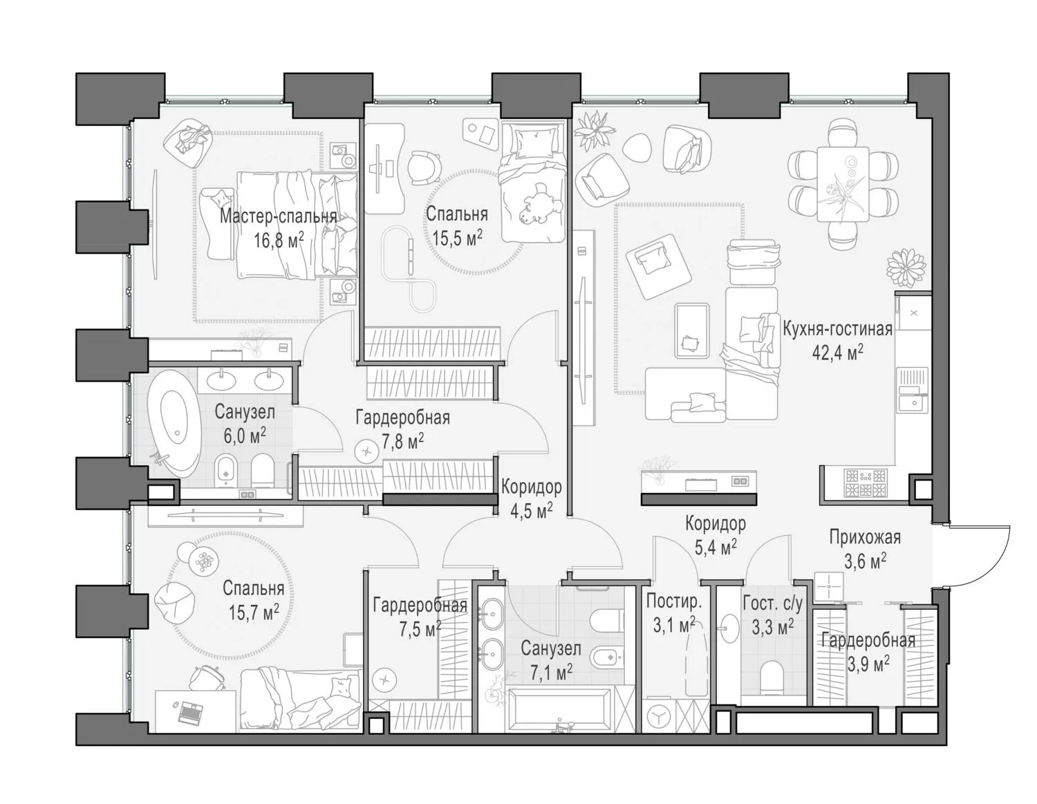 143.8 м² · 4 комнаты · 15/23 этаж · Июнь 2026